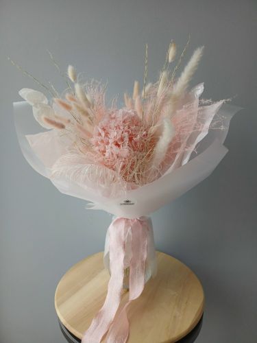 Букет из сухоцветов — великолепная замена живым цветам. Он подарит яркие эмоции в момент вручения, но кроме того, станет значимой частью декора интерьера